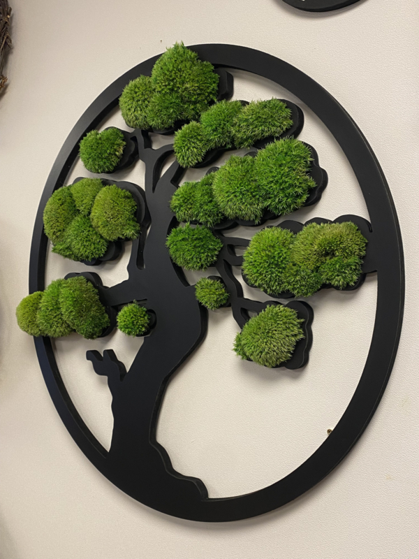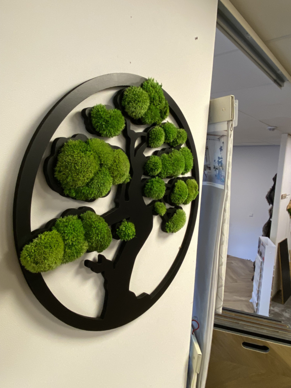 Omdat mos zo'n veelzijdig materiaal is wat geen onderhoud nodig heeft. Geen water en zowel in het licht, als op een donkere plek gehangen kan worden. Is er altijd wel een plekje te vinden waar deze levensboom kan pronken!