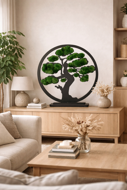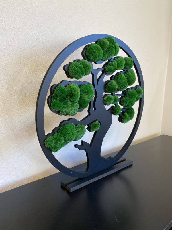 Een vertrouwd symbool in een vernieuwde vorm. Deze unieke uitvoering van De Levensboom wijkt af van het klassieke ontwerp met rendiermos in diverse kleurcombinaties. In plaats daarvan is het bladerdek volledig opgebouwd uit zorgvuldig geselecteerde bolmossen, wat zorgt voor een extra volle, zachte en natuurlijke uitstraling. De bolmossen geven de boom een serene, bijna meditatieve sfeer – perfect voor een rustgevende plek in huis of werkruimte.