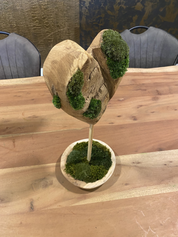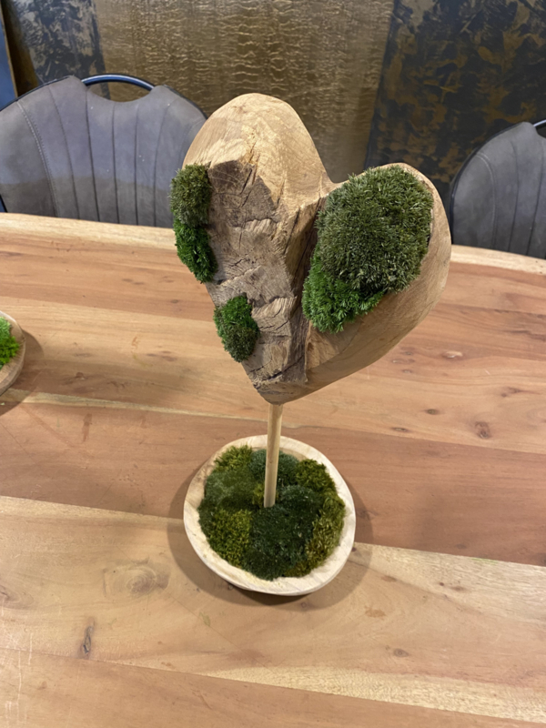 Teakhouten ‘mos’hart op standaard (2)
