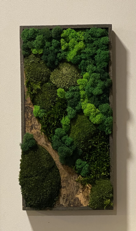 Omdat mos zo veelzijdig is en je er de mooiste creaties mee kunt maken is het onmogelijk om alle mogelijkheden te tonen. De toegevoegd foto's zijn van zelf gemaakte creaties, maar ook mos schilderijen die door cursisten gemaakt zijn.