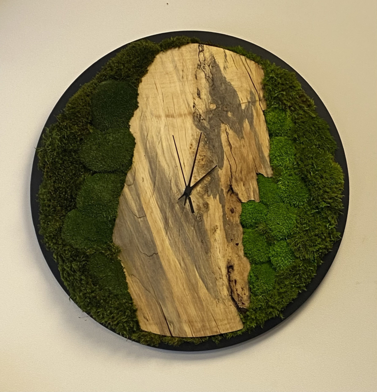 Mosklok (1)Breng rust, natuur en design samen met deze unieke mosklok. Elk stuk is met de hand vervaardigd en combineert de warme uitstraling van natuurlijk hout met levendig, onderhoudsvrij mos. Het resultaat is een harmonieus kunstobject…