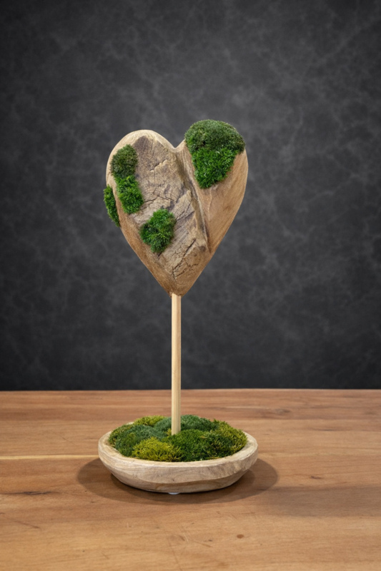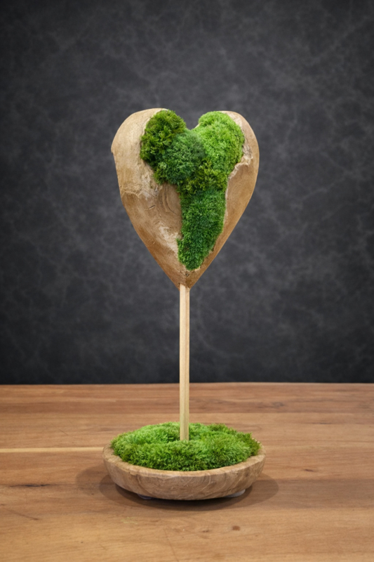Teakhouten ‘mos’hart op standaard (2)🌿 Mos hartje op houten standaard