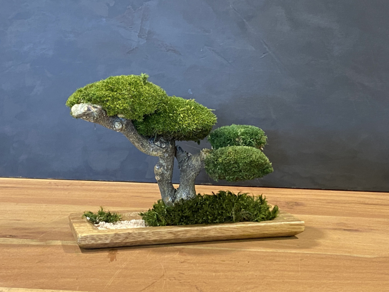 Houten schaal met mosboom (1)Breng de rust en schoonheid in huis met deze unieke moscreatie.